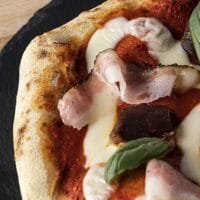 Pizza with porcini mushrooms and pepper guanciale